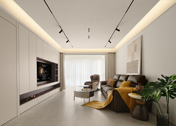 本案是小姐姐给父母住的养老房,整体色调偏浅色,客厅悬浮吊顶、隐形门加上整体的电视柜,同时去掉了原本的阳台门,将宽敞的阳台纳入客厅系统,柔和的光漫过简洁的墙面,沙发上随意搭着的毛毯、抱枕,藏着放松的信号;主卧舍弃一个暗卫换取充足的收纳,暖黄的色调,褪去白日喧嚣,躺下便是一夜好眠;书房是叔叔最满意的空间,本身很小的空间,现在有了适合书法的超大超深的桌子,收纳和沙发床也能满足小外甥女来访的临时休息功能,同时在吊柜上方预留了插座,后期可以放置投影,实现了休闲生活学习三不误。